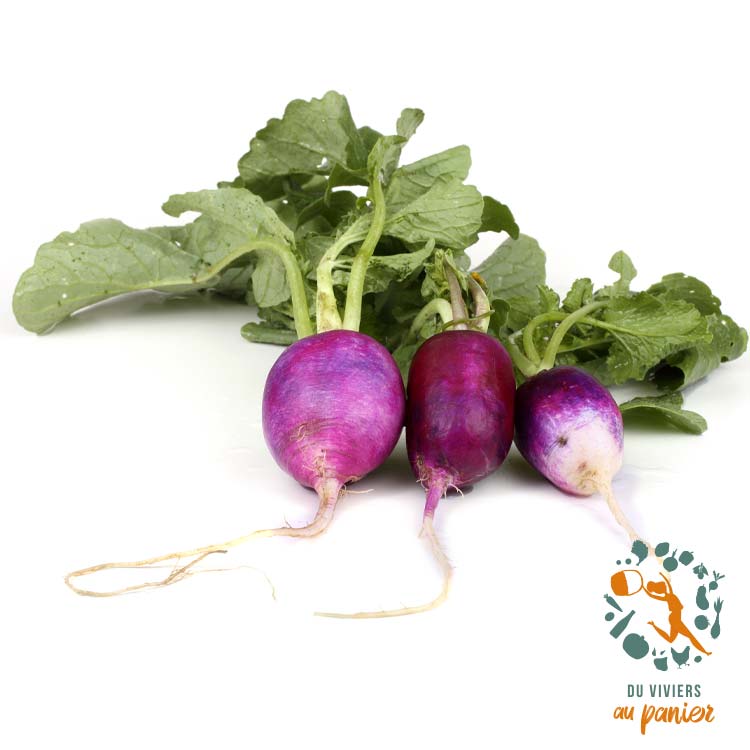 Radis violet, rose,lila, saveurs différentes, unité de 200 gr environ vendu 2,8 euros le kg