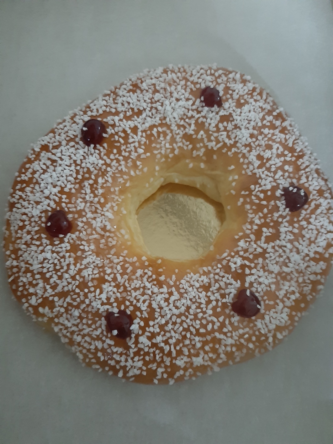De la crème pâtissière dans une brioche avec des fruits confits.....5/6 personnes en fonction de la gourmandise